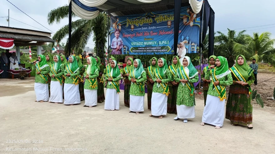 Maulid Nabi Muhammad SAW adalah momen penting bagi umat Islam di seluruh dunia untuk memperingati kelahiran Nabi Muhammad SAW, yang merupakan teladan dalam kehidupan. Pada tahun ini, pengajian Maulid Nabi diadakan dengan sangat meriah di wilayah Mesuji Di Desa Wono Sari Kecamatan Mesuji Timur, dan acara ini dipimpin oleh Ustadz Mumuy, S.Pd.I dari Pringsewu. Acara tersebut dihadiri oleh Bupati Mesuji Ibu Hj. Elfianah, SE dan Camat Mesuji Timur Bapak Roli Aditiawan Jaya, S.E.M.M yang menambah nuansa keagamaan dan kebersamaan dalam merayakan hari yang penuh berkah ini.